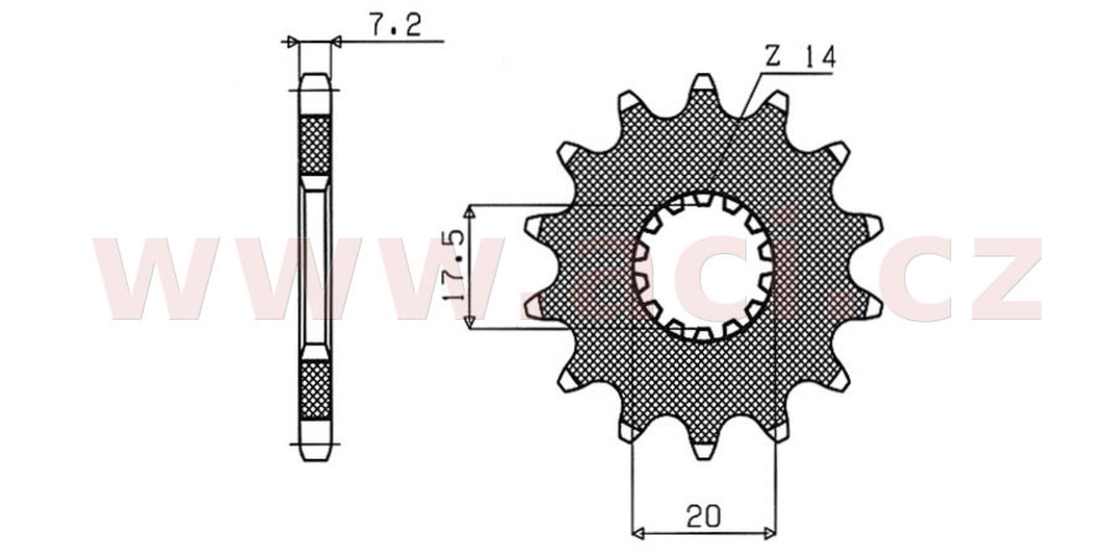 řetězové kolečko pro sekundární řetězy typu 428, BRAKING (14 zubů)