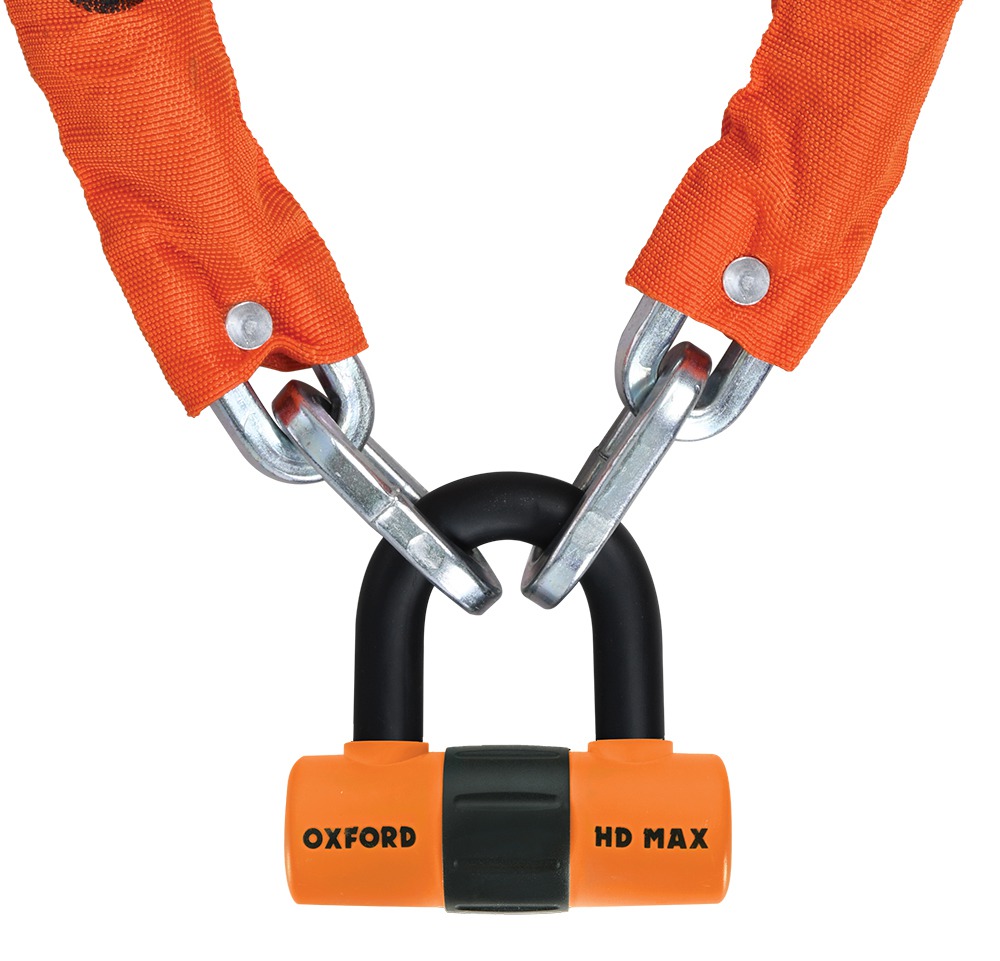 řetězový zámek na motocykl Heavy Duty, OXFORD (oranžový plášť, délka 1,5 m)