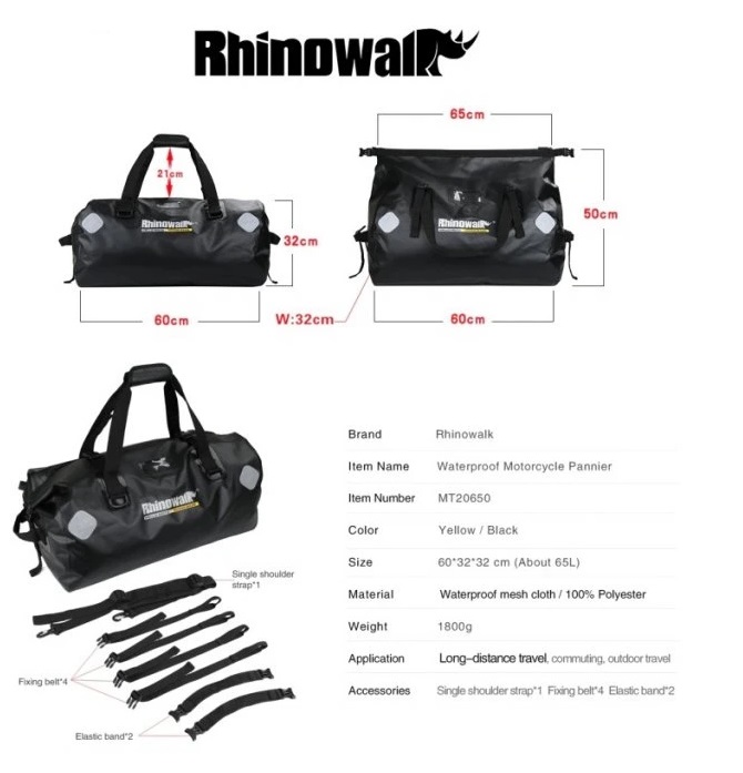Motocyklová vodotěsná brašna je vyrobena z kvalitní polyesterové tkaniny, která je odolná proti opotřebení. Velký otevírací design a velká úložná kapacita splňují vaše cestovní potřeby.