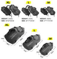 2dílná brašna na motorku na boky, materiál odolný vůči vodě i vysokým teplotám, objem 18l Moderní, prostorná, odolná a vodotěsná brašna na motorku Rhinowalk MT1428 je určena pro všechny, kteří rádi cestují na motorce. Skládá se ze dvou bočních brašen, každá o objemu 9L. Brašnu Rhinowalk MT1418 využijete na každodenní ježdění, ale také na delší expedice. Je vyrobena z kvalitního PVC materiálu, který je 100% vodotěsný a patří k nejodolnějším materiálům. V místech, kde jsou brašny položeny na motorku je speciální povrch, vyrobený z tepelně odolného materiálu, který vydrží až 160°C a zabraňuje poškození brašny výfukovým teplem. Díky rolovacímu systému zavírání je vhodná i do velkého deště a zaručuje ochranu převážených věcí před vniknutím vody. Rychlé a jednoduché uchycení pomocí popruhů, kterými můžete nastavit vzdálenost brašen. K brašně je dodáván také popruh, pomocí kterého si z brašny můžete udělat tašku přes rameno. Vhodná na silniční i terénní motocykly. Materiál: 500D polyester s vnitřím zátěrem PVC Rozměr: 37 cm x 11 cm x 22 cm Objem: 18 litrů Barva: Černá Umístění: Na sedadlo spolujezdce Hmotnost: 2110 g