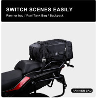Motocyklová multifunkční brašna je vyrobena z kvalitní polyesterové tkaniny, která je odolná proti opotřebení. Velký otevírací design a velká úložná kapacita splňují vaše cestovní potřeby. Obsahuje plně vodotěsnou, vyjímatelnou tašku se zipem. Taška vlastní nastavitelný ramenní popruh pro pohodlné přenášení. Disponuje také síťovanou přihrádkou pro uložení mokrého oblečení nebo ručníků. Hodí se pro většinu motocyklů, motokrosových motorek a endura. Snadno se instaluje na přední, boční nebo zadní část motocyklu. Taška má 4x přezku a 4x pásek, které lze využít k připojení dalších tašek modelu MT216. Prostřednictvím spojení lze každou tašku tedy kombinovat a dosáhnout tak možností 2v1, 3v1, 4v1. Rozměr: 23*10,5*46,5cm Kapacita: 10L Váha: 700g Materiál: polyester Barva černá