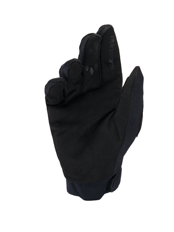 Zesílená dlaň z pevné a odolné syntetické kůže s prošívanými panely a perforacemi na prstech pro optimální komfort, grip a prodyšnost i při delším ježdění.