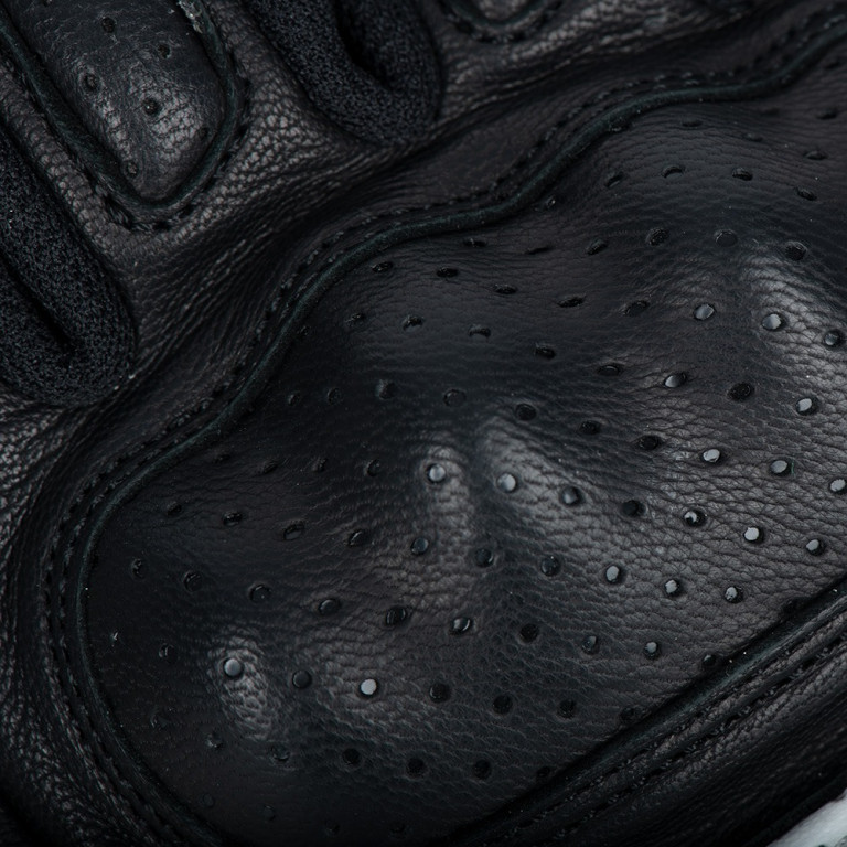 Kožená obšívka, skrytý PU protektor zápěstí a zesílení v podobě polstrování z EVA paměťové pěny Amara v oblasti dlaně doplněné o strečové panely tvoří tyto rukavice komfortní během jízdy. Ventilační panely z trvanlivé, síťoviny poskytují extra prodyšnost. Extra ochranu proti oděru zajišťují polstrované panely na vnějších plochách prstů.