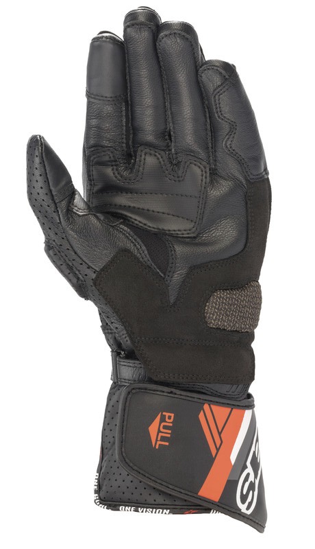 Rukavice SP-8 třetí generace jsou populární dlouhé sportovní rukavice, nesoucí závodní DNA značky ALPINESTARS. Obšívka rukavice je vyrobena z kozí kůže v kombinaci se syntetickým mikrovláknem. Zahrnuje vícepanelové uspořádání s integrovanými protektory pro dosažení vysokého standardu ochrany proti oděru a komfortu současně. Chránič zápěstí tvoří protektor z TPU plastu. Zapínání pomocí zdvojené manžety na suchý zip a strečový můstech mezi palcem a ukazováčkem zajišťují zvýšený komfort.