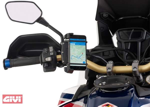 Univerzální držák smartphonu, umístitelný na motocykl, skútr, ctyrkolku, kolo. Nastavitelná velikost pro telefony s rozmery v rozsahu 144 x 67mm to 178 x 90mm