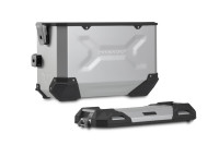 Odolné hliníkové kufry TRAX ADV se budou cítit jako doma na každém úseku silnice: reliéfní vzory dodávají 1,5 milimetru silný svařovaný hliníkový materiál stěn stabilitu. Zcela odnímatelné víko s rukojetí z eloxovaného hliníku a rychloupínacími prvky usnadňuje nakládání a vykládání motocyklových zavazadel; Zkosená boční hrana poskytuje vysokou světlou výšku při zatáčení. S tímto kompletním řešením máte všechny komponenty, které potřebujete k cestování s TRAX: dva vodotěsné boční kufry TRAX ADV, dva odnímatelné boční nosiče SW-MOTECH, sadu adaptérů, sadu zámků, omezovač víka a ochranu proti krádeži za atraktivní cenu.