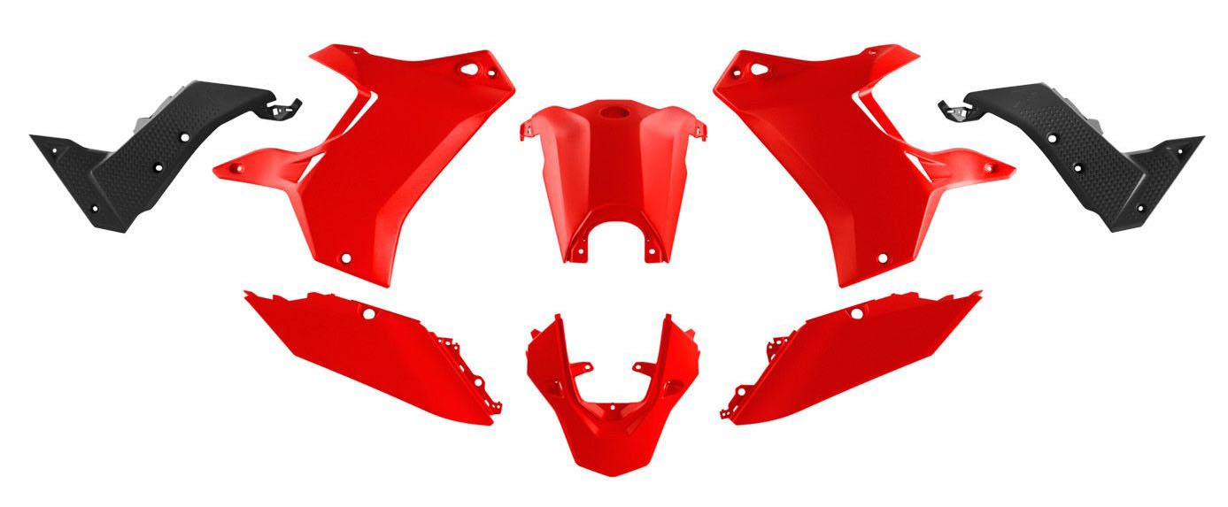 • Sada se skládá ze zadního blatníku, zadních + středových podsedlových plastů, krytů chladiče a krytu nádrže