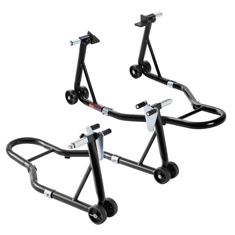 Ocelová stabilní konstrukce, hmotnost 4,7 kg, pogumované dosedací plochy, šířka úchytů lze plynule nastavit dle rozměrů motorky, 4 silná kolečka pro bezpečné zvedání a spouštění, maximální celková hmotnost motocyklu až 400 kg, špičková kvalita