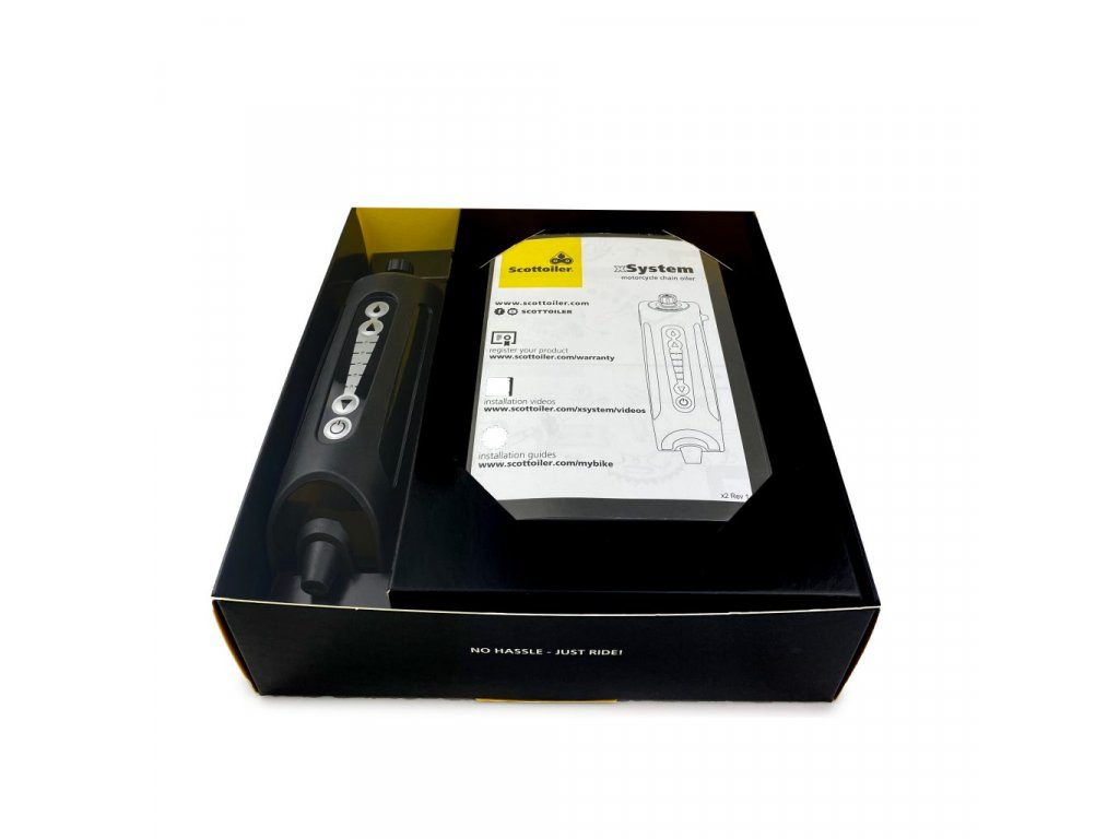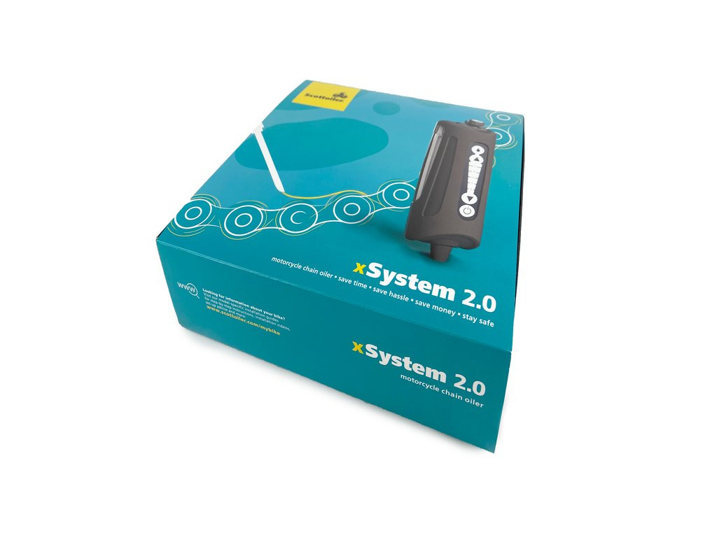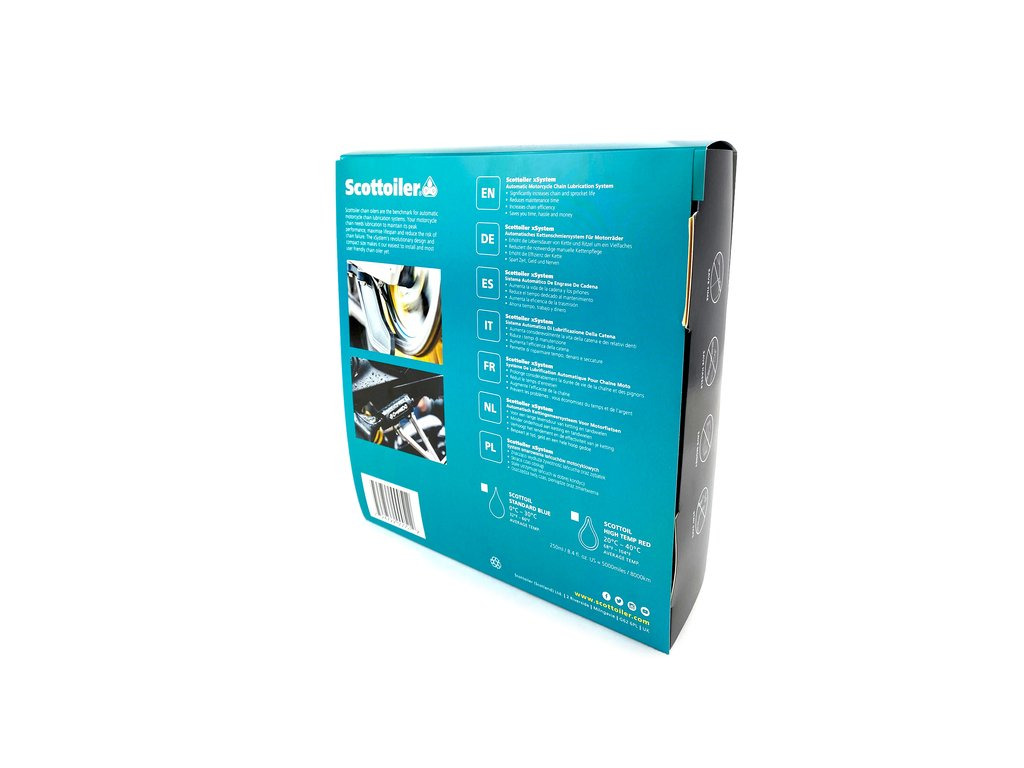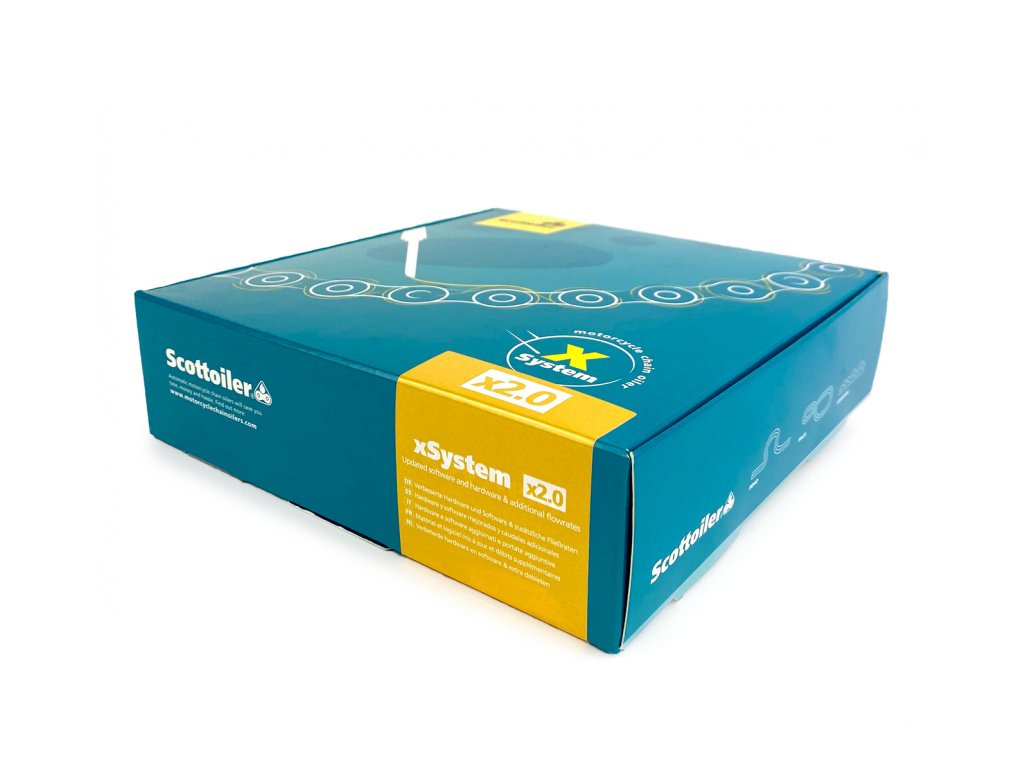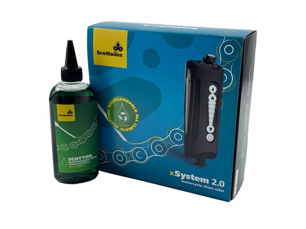 Scottoiler xSystém 2.0 automatické mazání řetězu. Nová vylepšená verze (2.0) 2021, odolnější materiál proti vibracím, nová vnitřní konstrukce jednotky, čerpadlo bylo nahrazeno novým elektromagnetickým ventilem, který eliminuje potřebu zpětného ventilu v přívodním potrubí. Velice snadná montáž, jednoduchá obsluha = optimální mazání řetězu za všech jízdních podmínek!