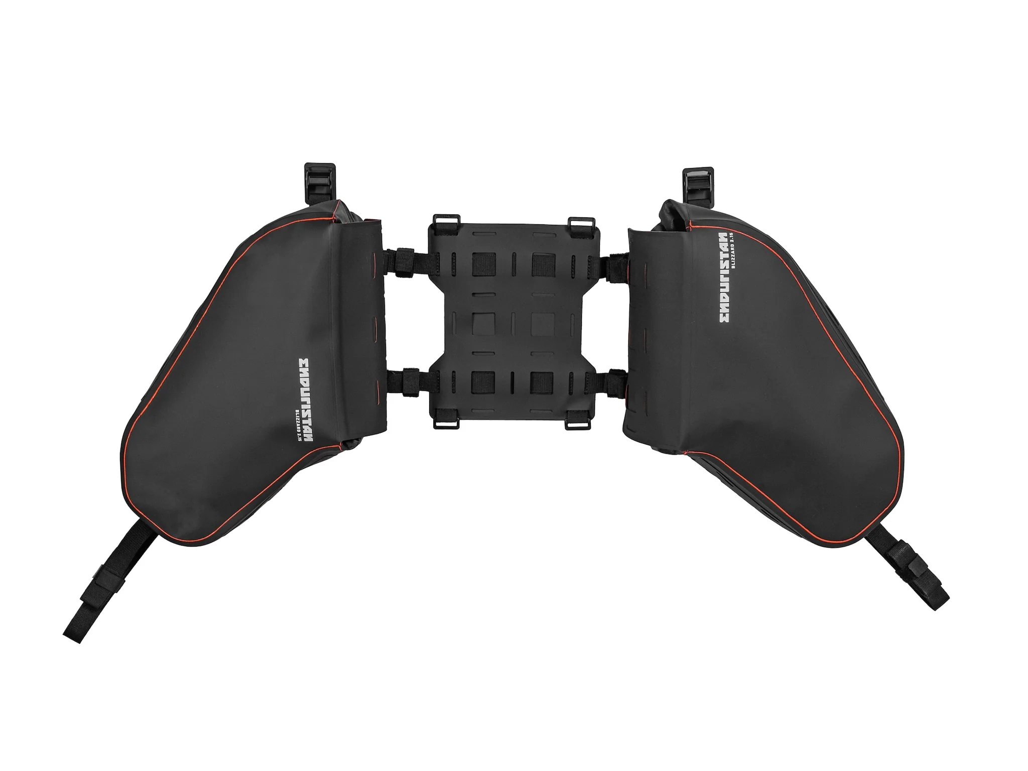 Vylepšeno bylo také nastavení šířky: tašky nyní sedí ještě bezpečněji a ve srovnání s první generací se snadněji instalují a nastavují. Montáž pod madla spolujezdce již není problém. Tyto všestranné možnosti zajišťují, že vaky zůstanou bezpečně na svém místě v jakémkoli terénu a lze je perfektně nastavit na různé šířky sedadla.