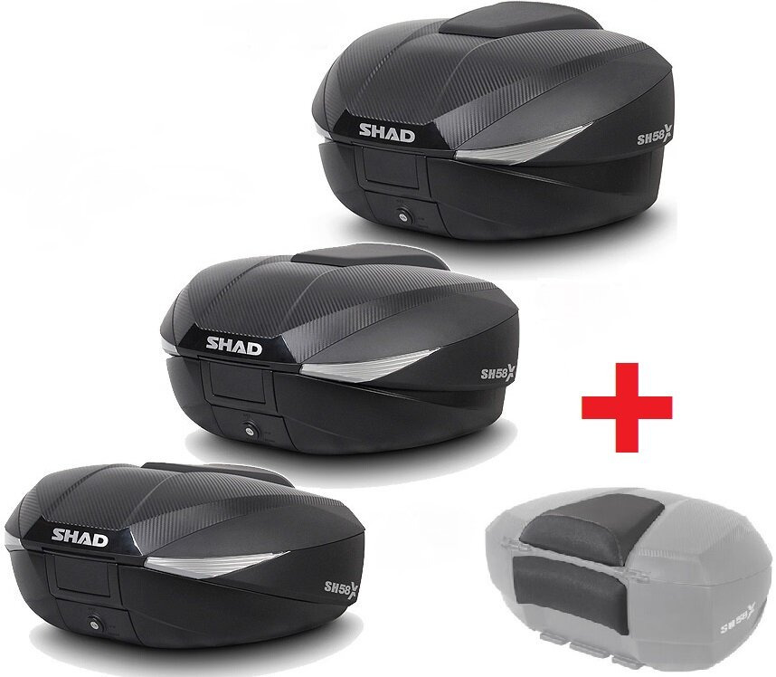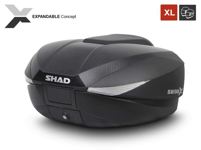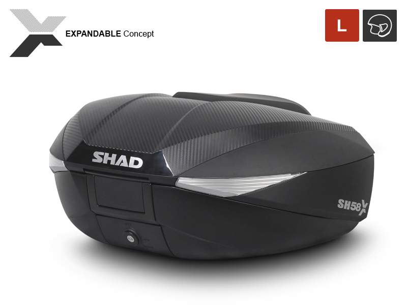 Shad SH58X Carbon D0B58206 je jedinečný špičkový motokufr na trhu. Jeho inovativní design umožňuje jezdci nastavit velikost ve třech různých pozicích během několika sekund (46, 52 a 58 litrů).