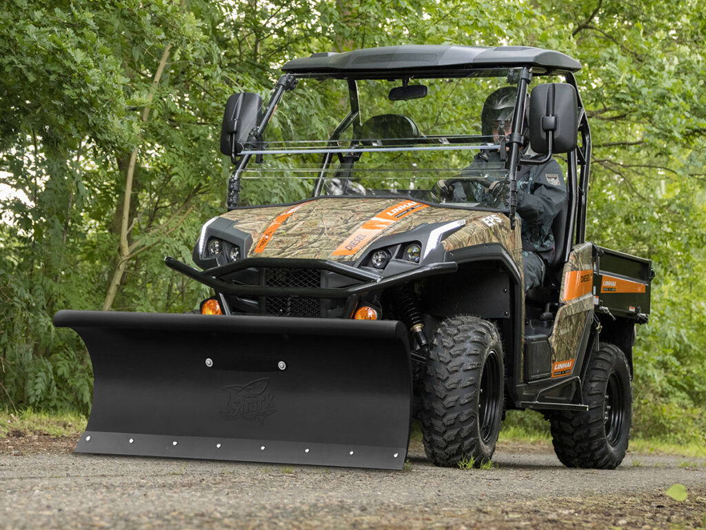 Radlice SHARK 60"/152 cm pro ATV/UTV s adaptérem, pro odklízení sněhu, štěrku, písku, uhlí, mulče atd., zvětšená výška, nerezavějící mrazuvzdorná polyetylénová konstrukce, snižuje namáhání rámu stroje, vynikající poměr kvality a ceny