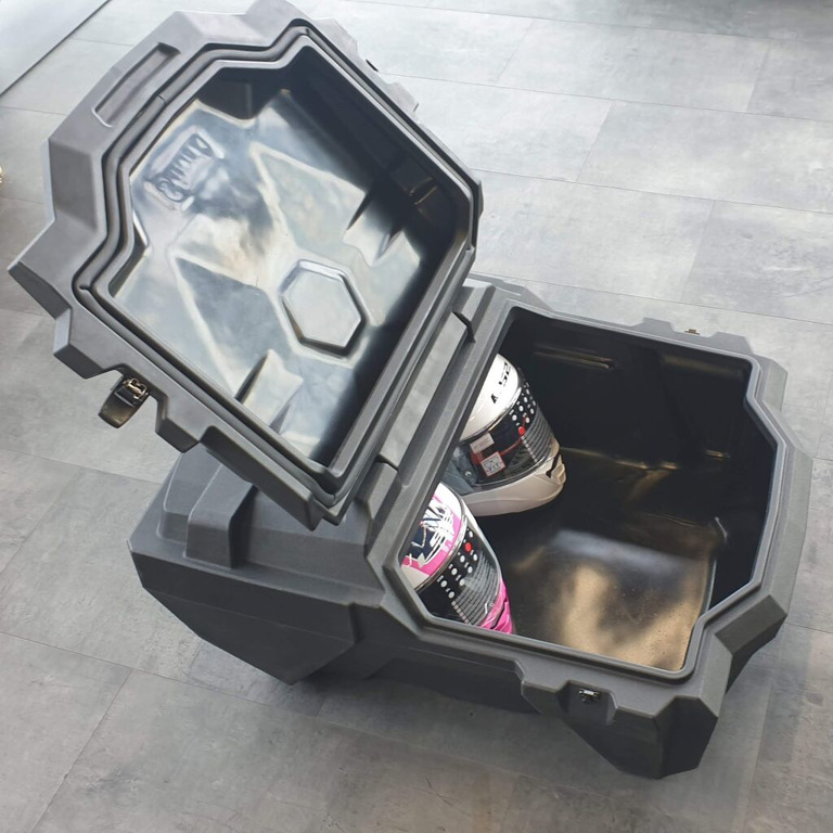 Uzamykatelný zadní box pro SXS/UTV. Z vysoce kvalitního nárazuodolného vysokohustotního polyetylénu LLDPE. Tento box pojme vše, co potřebujete pro cestování, práci, rybaření nebo lov. Vnitřní prostor o objemu 140 litrů. Víko je uzamykatelné na dvě kovové přezky