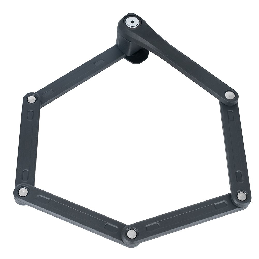Díky velkému obvodu rozloženého zámku s 6-ti lamelami je možné zajistit na místě celou škálu předmětů a případě nepoužívání zámku je snadným složením zámek extra skladný a nenáročný na místo. Univerzální rámeček, který je součástí balení nabízí jednoduché řešení přepravy zámku na rámu kola.