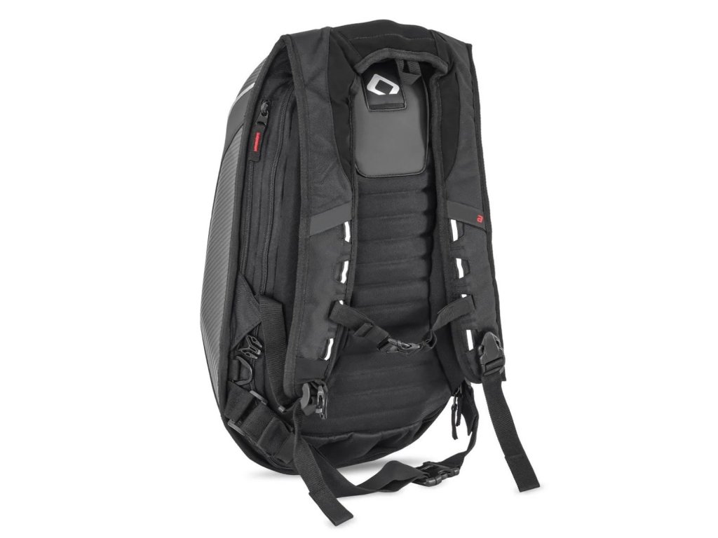 Batoh na motorku s tvarovanou tvrdou skořepinou. Objem až 30 litrů je ideální velikost pro každodenní použití nebo na výlety