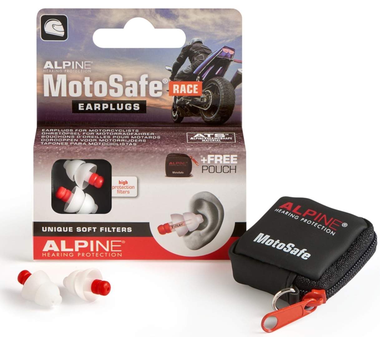 Špunty do uší ALPINE MotoSafe nabízí optimální ochranu vašeho sluchu, aniž by omezovaly zvuky dopravy, vašeho komunikátoru nebo motocyklu samotného, a to vše díky inovativním zvukovým filtrům AlpineAcousticFilters™.