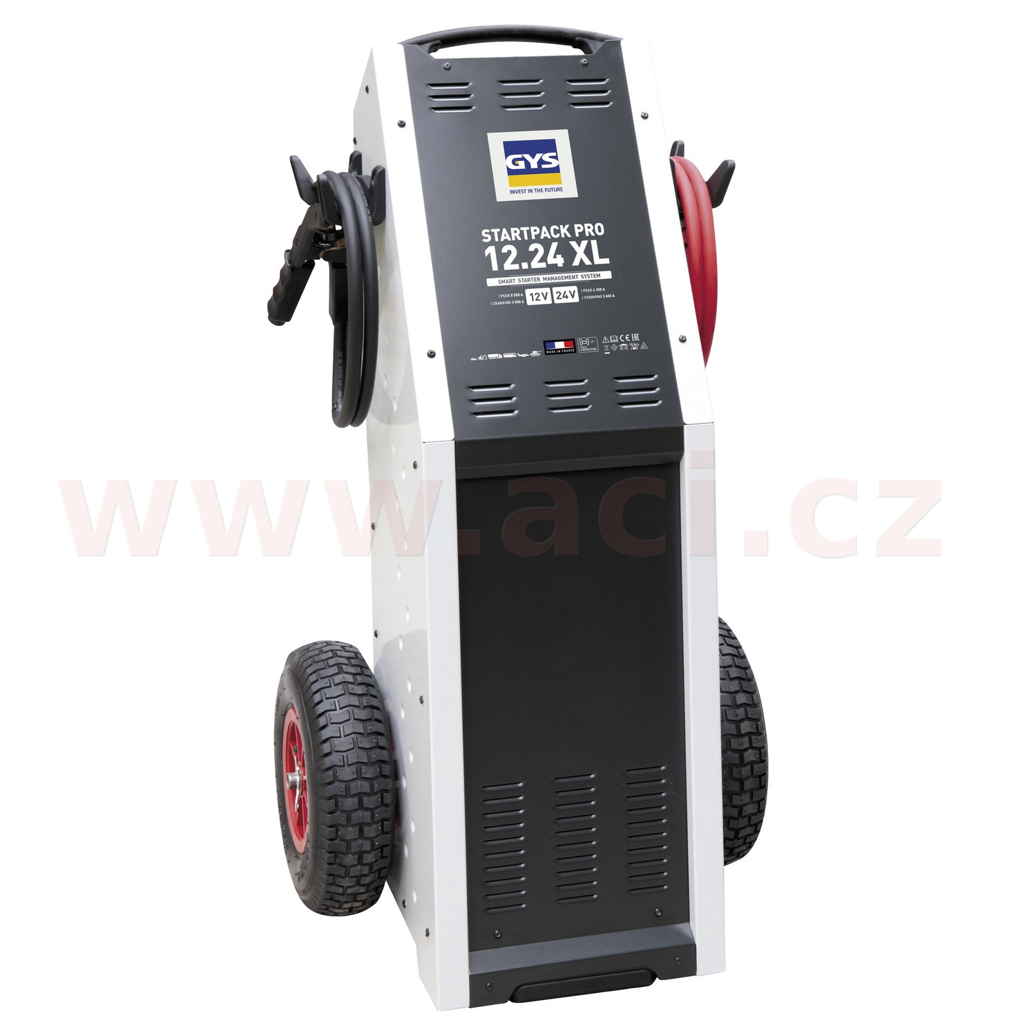 - Nabíječka baterie GYSFLASH 6.12 XL, která je dodávána s tímto boosterem, využívá nejnovějších technologických inovací. Je kompaktní, lehká a vodotěsná a perfektně spolupracuje s samostatným startérem.