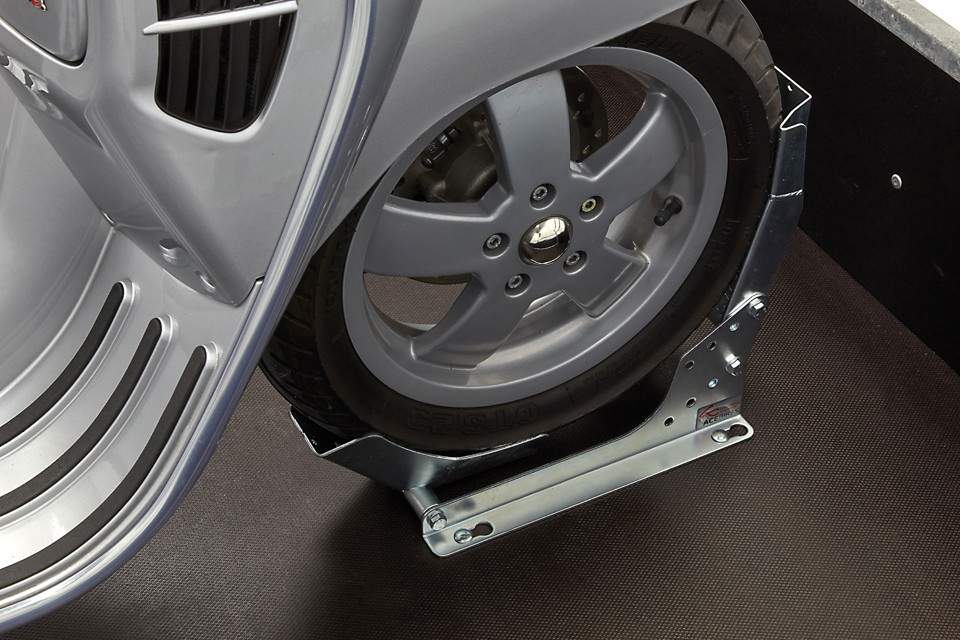- Vysoce kvalitní galvanizovaný stojan Acebikes je dokonalým řešením pro bezpečný a pohodlný transport vašeho skútru na přívěsi nebo v dodávce