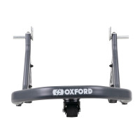 Zadní stojan pro uchycení pod zadní kyvnou vidlici dovoluje díky otočným kolečkům s brzdou pousouvat s motocyklem na malém manipulačním prostoru.