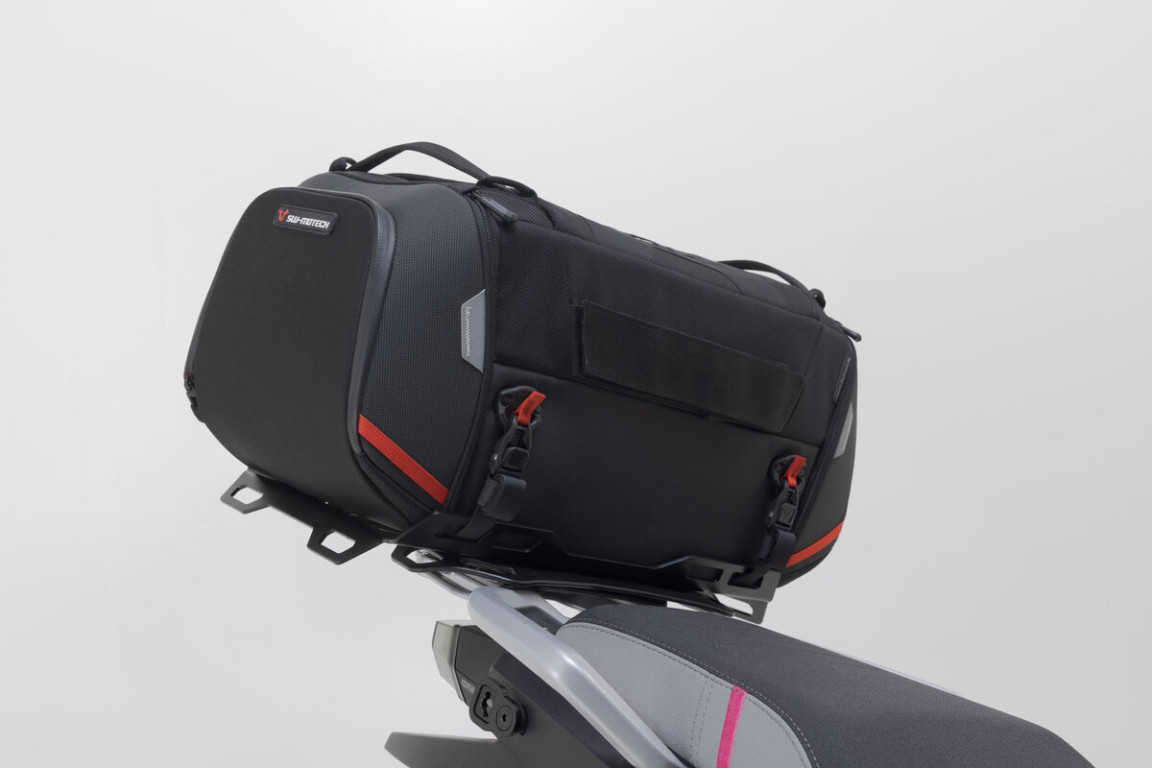 Zadní brašna ze série PRO je vyrobena společností SW-MOTECH z nezničitelného balistického nylonu 1680 D a nosič z robustní hliníkové slitiny. Nosič je připevněn k pružným montážním bodům motocyklu specifickým pro motocykl.