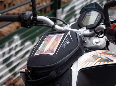 Vyztužená taška na nádrž z polyesteru pro bezpečné uložení věcí vnitřní kapsa na zip, přihrádky s elastickým lemem vrchní přihrádka pro mobil až do velikosti 5,5“ touch screen panel pro ovládání bezdotykového telefonu hlavní přihrádka s voděodolným zipem a odolnými jezdci pro snadné ovládání v rukavicích voděodolný kryt fixace na motorku pomocí univerzální plotny (součástí balení) kabelový vývod na USB nabíječku (možnost dokoupit zvlášť) reflexní prvky pro zvýšenou bezpečnost.