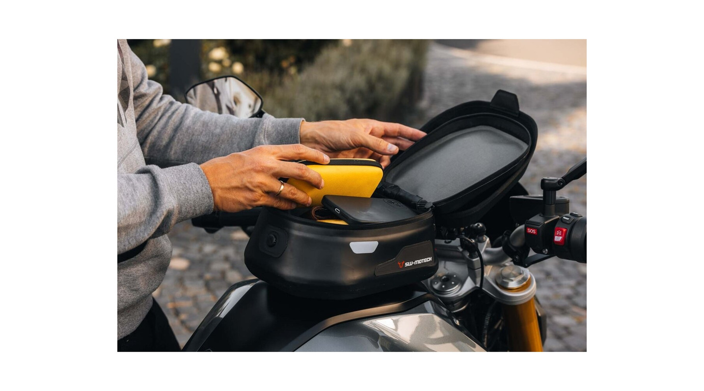 Malý tankvak od SW-Motech Micro PRO WP poskytne místo pro drobnosti a přitom nepřekáží na nádrži. Je zcela voděodolný a nepotřebuje tak pláštěnku.