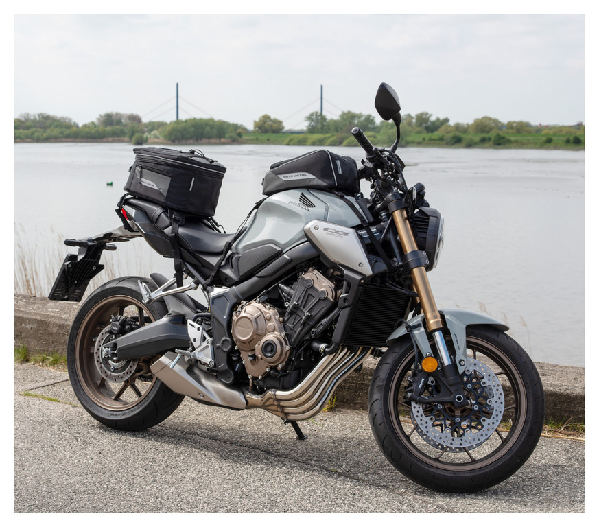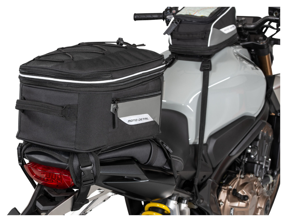 Se sedlovými brašnami moto-detail o objemu 2 x 20 l (10068895) a moto-detail batohem (10068894) ve stejném designu si můžete sestavit solidní zavazadlový systém pro vaši příští túru.