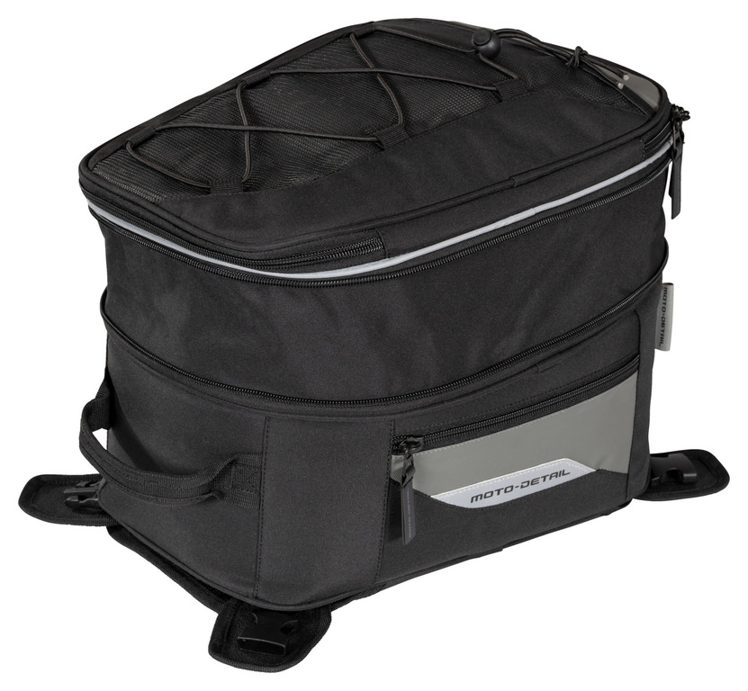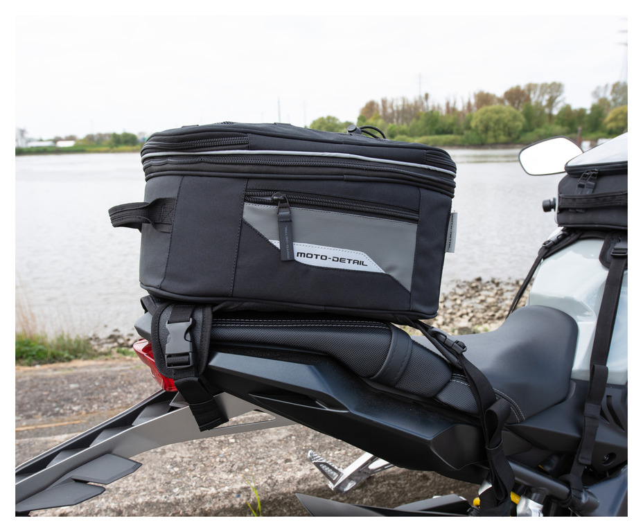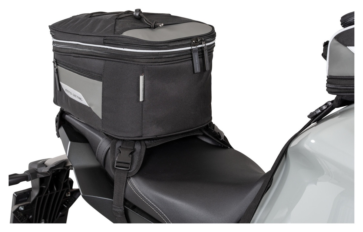 Pro každého, kdo chce na motorce přepravit trochu více zavazadel: moto-detail tail bag 40 l bude vaším budoucím společníkem. Hodí se na každé zadní sedadlo a lze jej bezpečně upevnit pomocí základní desky a nastavitelných popruhů. Robustní taška je vodoodpudivá a tak jsou uložené věci docela dobře chráněny před krátkým deštěm. Praktické je i rozšíření objemu pomocí zipu. V závislosti na tom, zda potřebujete menší nebo větší objem, můžete pomocí zipu zvětšit nebo zmenšit velikost tašky.