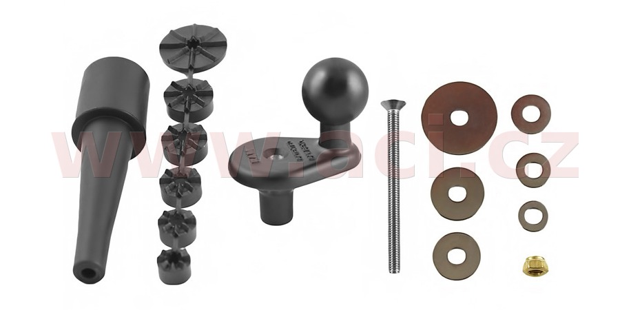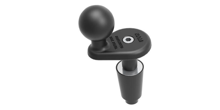 Patentovaný kulový čep velikosti B je vyroben z velmi kvalitní pryže tak, aby tlumil nárazy a vibrace, které by jinak byly přenášeny na upevněné elektronické zařízení.