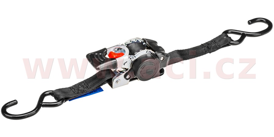 Jakmile uvolníte hák, mechanismus popruh automaticky navine zpět.
