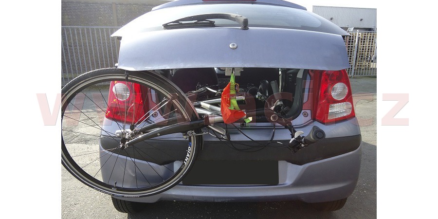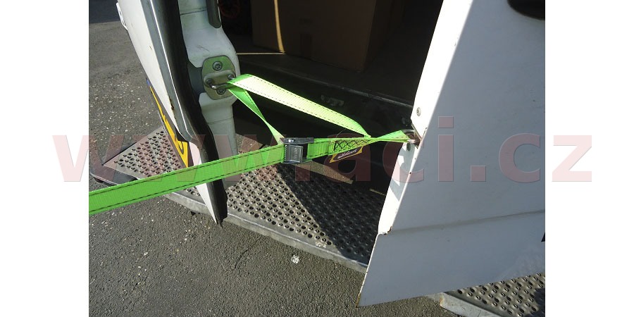 Jednoduché a bezpečné zajištění zadních dveří Vašeho vozidla v případě nadměrného nákladu. Včetně červeného varovného praporku.