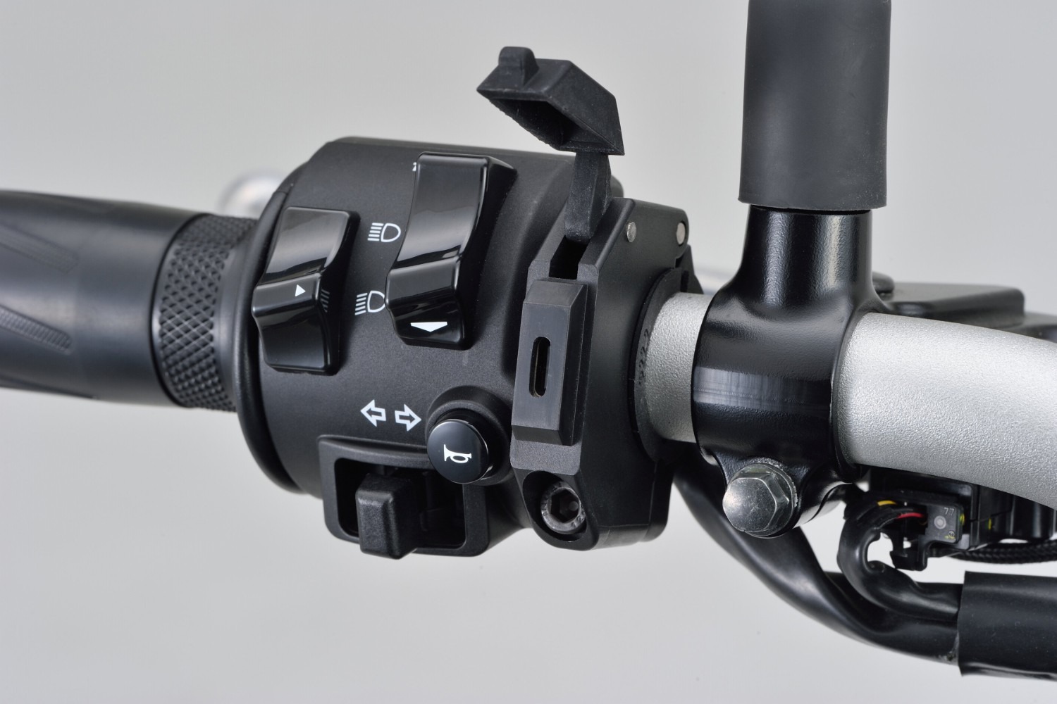 USB zásuvka 5V/2A, 2 vstupy s objímkou pro uchycení k řidítků a trubkám o průměru 22 a 25 mm, OXFORD