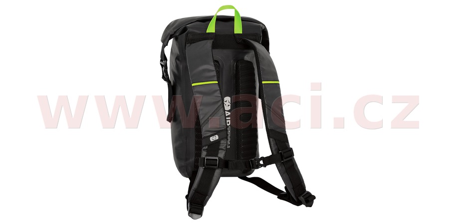 - Rolovací, vodotěsný, vrchní uzávěr se zapínáním pomocí nastavitelných popruhů s přezkami.