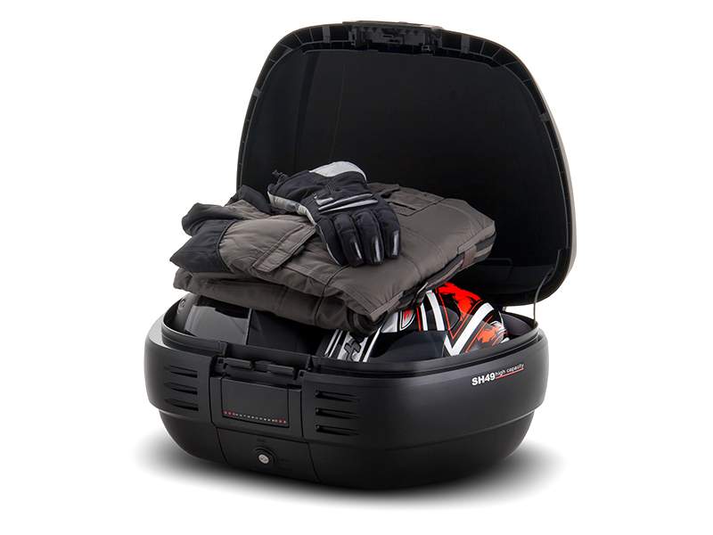 | Popis | SH46 kufr s velkou kapacitou pro 2 helmy. Opěrka, brzdové světlo a barevné kryty dostupné jako příslušenství. Včetně plotny. |