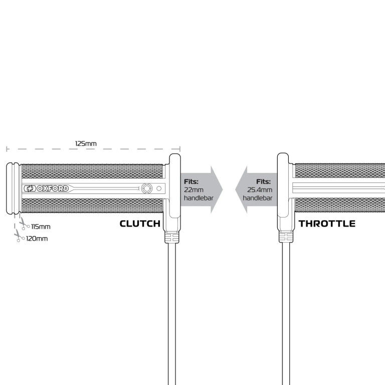 - Přizpůsobitelné rukojeti - Délka rukojeti 125 mm, ale v případě potřeby lze zkrátit na 120, 115 mm, s otevřenými konci umožňujícími montáž závaží na řídítka.