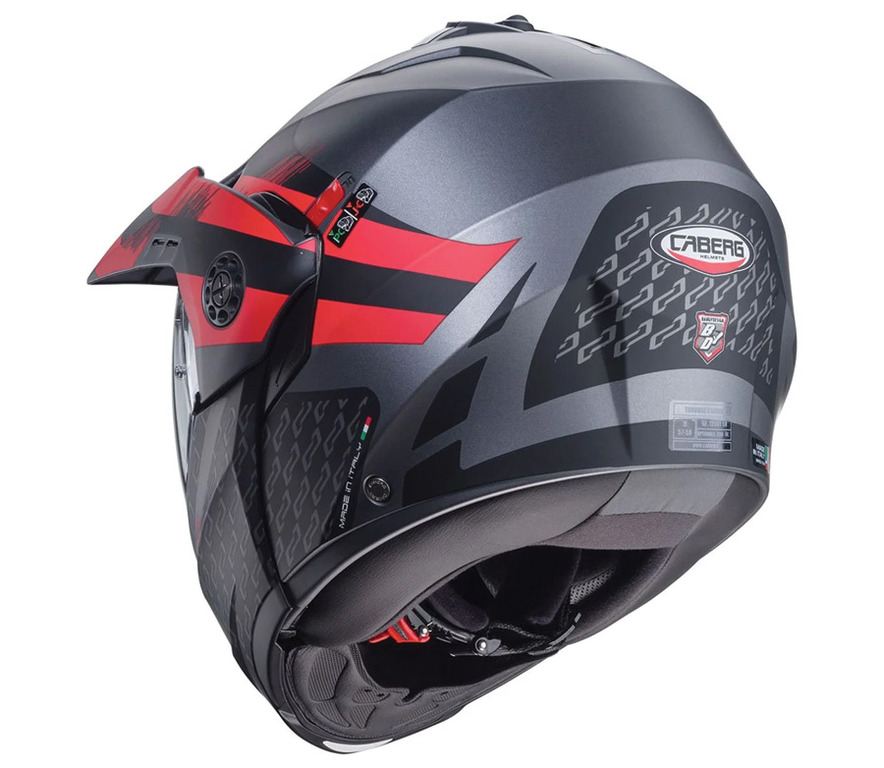 Výklopná helma Caberg Tourmax X Sarabe matt gun metal/black/red