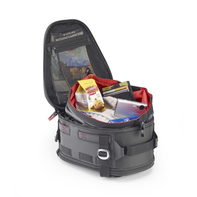Cestovní zavazadlo na sedlo spolujezdce, rozšiřitelné, objem 9-12 litrů, šxvxh = 260x129x240 mm, popruh přes rameno, voděodolné zipy, madlo a popruh přes rameno, vnitřní vodotěsná vložka. Úchyt pomocí 4 popruhů. Zesílené části umožňují držet tvar i prázdnému zavazadlu. Nová řada výrobků X-LINE. Model od roku 2022.