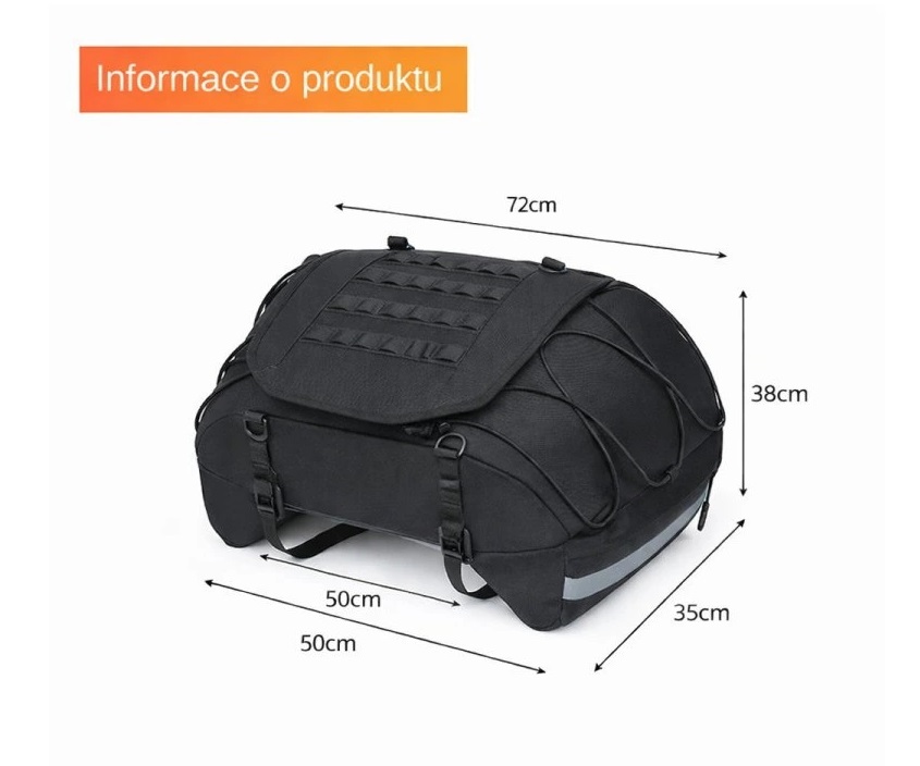 objem 35 až 50 l; protiskluzový materiál na spodní části; U-tvar; snadné a flexibilní připevnění; stohovatelné; 100% nepromokavý vak; součástí rukojeť; reflexní prvky