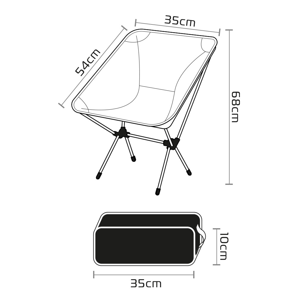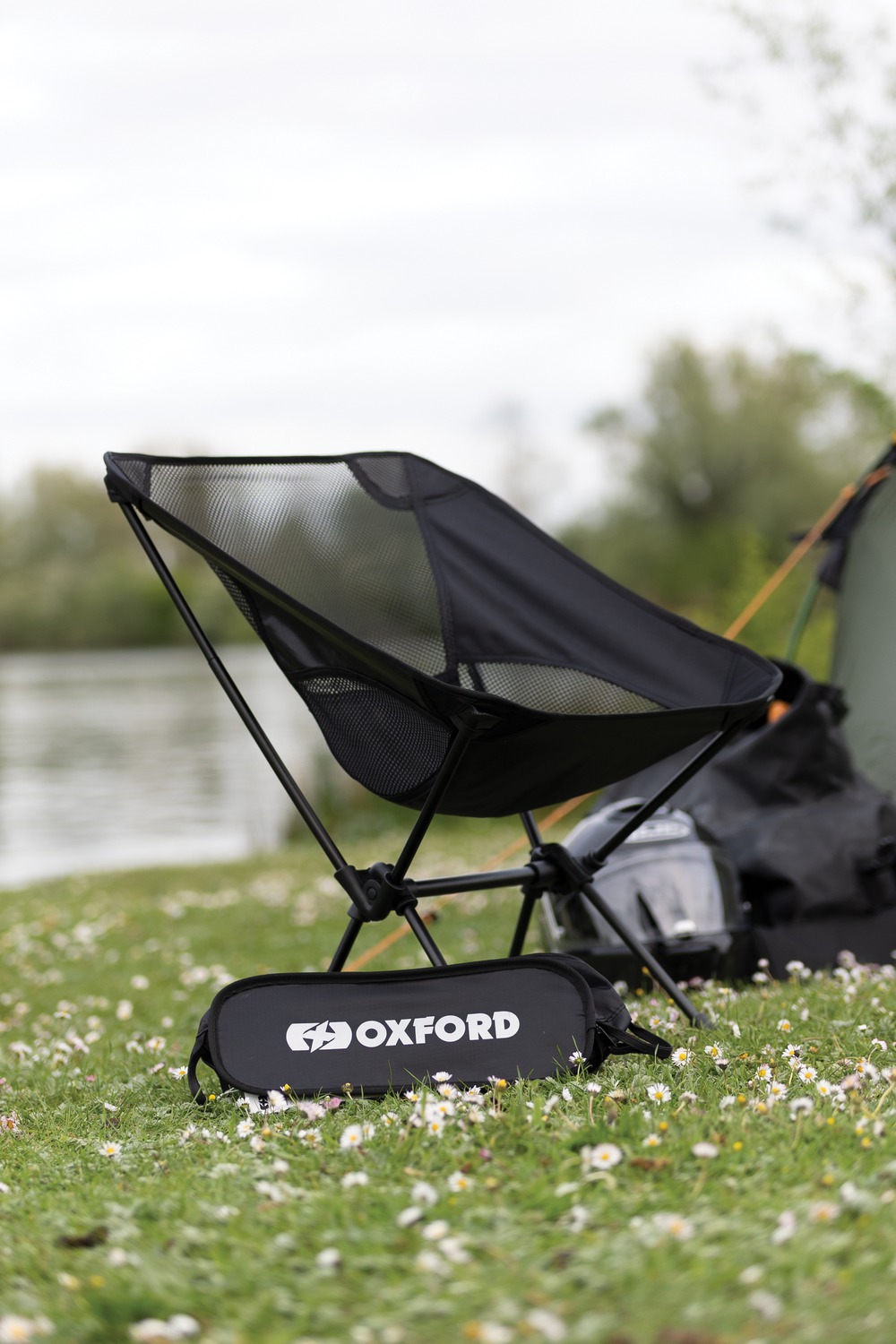 Lehká a skladná kempingová židle, která byla promyšlena a navržena fanoušky cestování na motocyklech a kolech z oddělení vývoje společnosti OXFORD PRODUCTS. Židle je lehká, skladná a obsahuje textilní obal pro možnost převážení v zavazadlech motocyklů, kol, elektrokol nebo čtyřkolek.