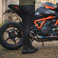 • Vnější vrstva z materiálu Armourlite™ super stretch. Odolný denim s vetkaným polyamid vláknem používaným také pro výrobu pevnostních popruhů na padáky.