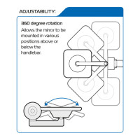 Prémiové zrcátko, které nabízí možnost rotace o 360° a obsahuje antireflexní sklo. Toto zrcátko je navrženo, aby pasovalo na řidítka o průměru 22 mm.